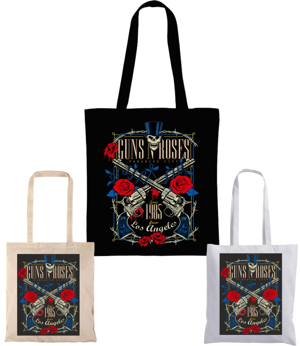 Guns n roses τσάντες Αγοράς Tote bags με μακριά χερούλια 100% cotton. Ψηφιακές εκτυπώσεις dtg απ’ ευθείας πάνω στο ύφασμα.